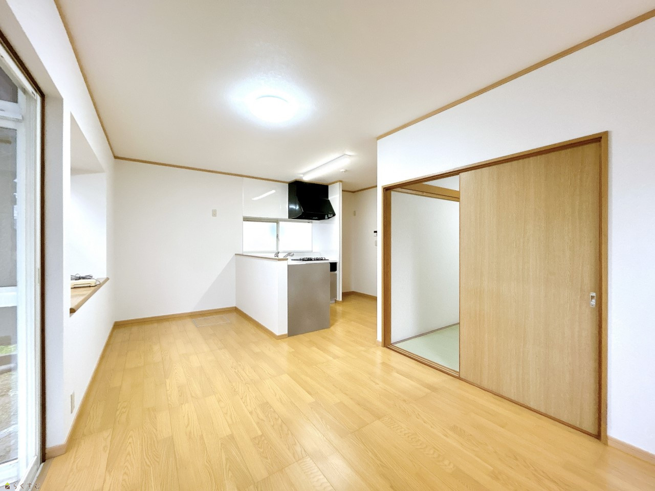 12帖のLDK。隣接する和室と繋げてもお使いいただけます♪