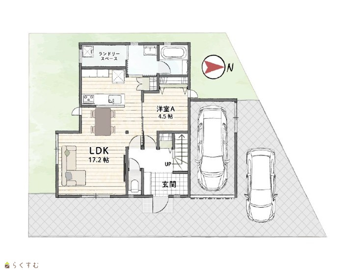 駐車2台可能(1台分のインナーガレージ付き)