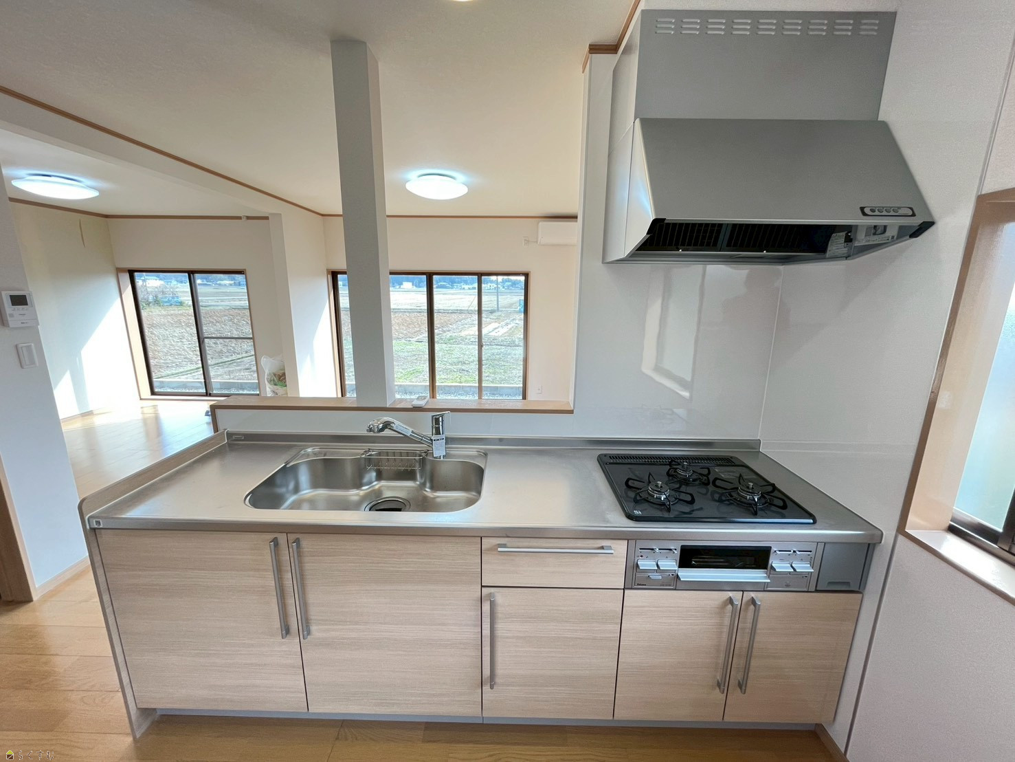 キッチン背面に家電置場・コンセント設置し、一部窓ガラス交換済