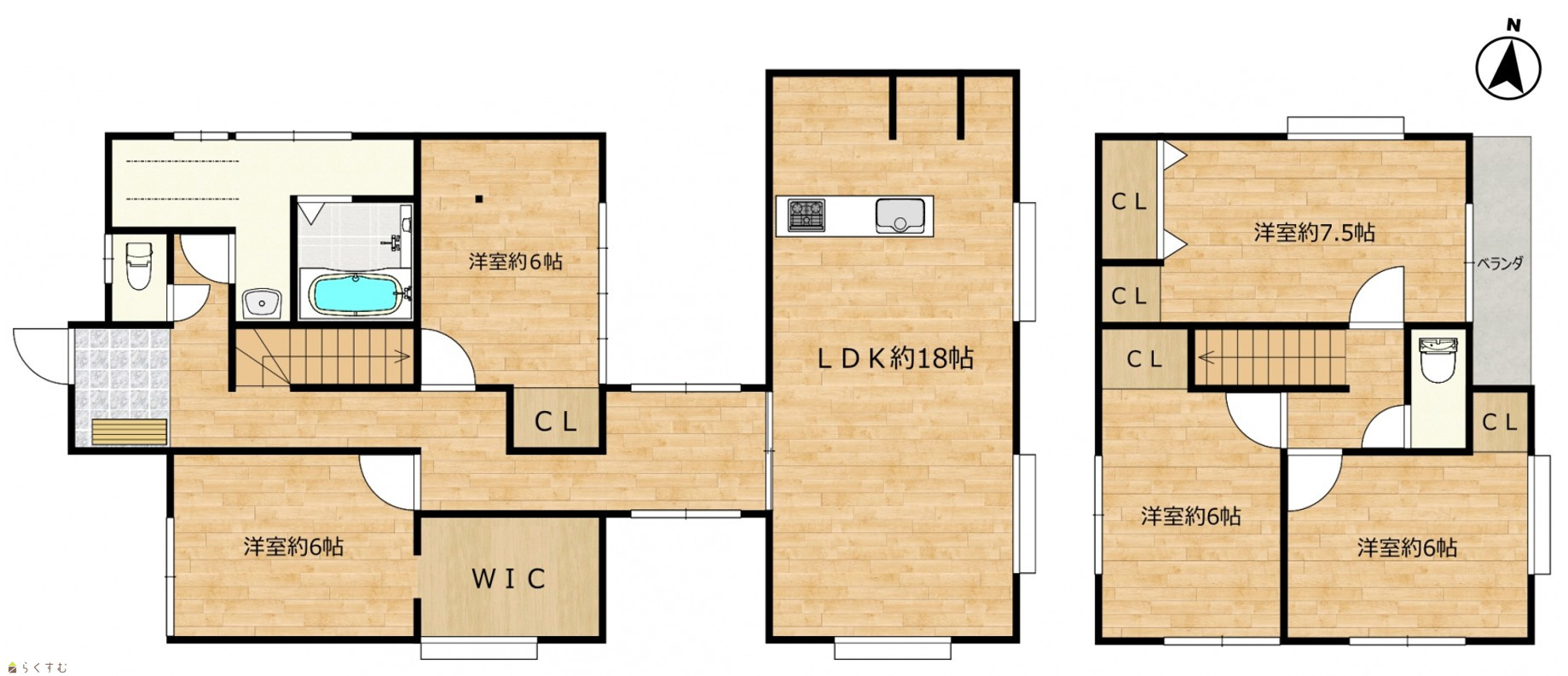 1階和室二間をLDKに改修し、5LDKに変更。