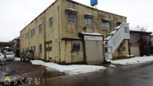 県道498号線(長岡中之島見附線)沿い、土地約301坪、工場約135坪、ほかに約17坪の倉庫有。現中古車販売店
