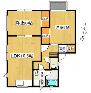 2LDK (洋室:6、6)、LDK10.5