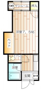 敷金・礼金・仲介手数料なし対象物件。一人暮らしに嬉しいオール電化、造り付けベット&サンルーム付。