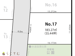 整形地、前道6m以上、更地、スーパー近く、閑静な住宅街、建築条件なし、所有権、側溝、電気、都市ガス(宅地内)、上水道(宅地内)、下水道(宅地内)、住宅向け