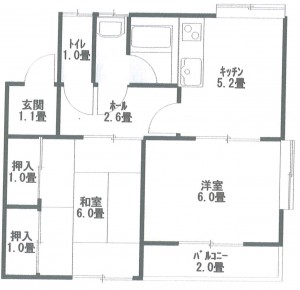 2DK (和室:6畳) (洋室:6)、DK5.7